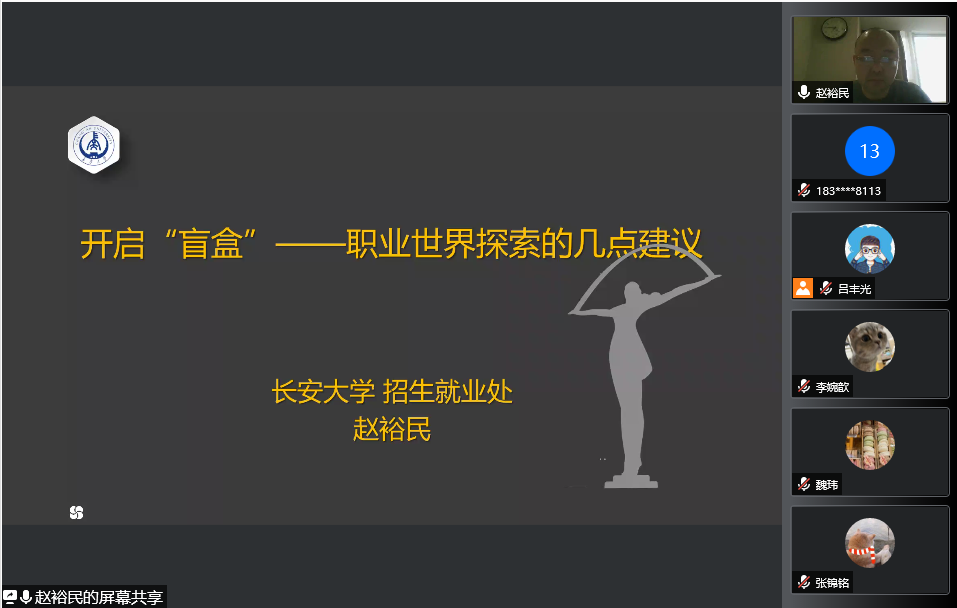 疫情当前,就业形势尤其严峻,水环学院对研究生就业工作紧抓不懈。1月4日,学院邀请188改名taptap招生就业指导教研室主任赵裕民为研究生做《开启“盲盒”——职业世界探索的几点建议》讲座,为研究生进行线上就业指导,全体毕业班研究生参加,学院党委副书记王妍主持。