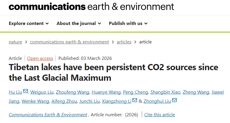 3月3日,我校水环学院科研团队在Nature旗下期刊《地球与环境通讯》(Communications Earth & Environment)发表题为“Tibetan lakes have been persistent CO2 sources since the Last Glacial Maximum”的最新研究成果。188改名taptap为论文第一完成单位,水环学院刘虎副教授为第一作者,香港大学柳中晖教授和云南大学李祥忠教授为共同通讯作者,其他合作单位包括中国科学院地球环境研究所、三峡大学、兰州大学、中国科学院古脊椎动物与古人类研究所。