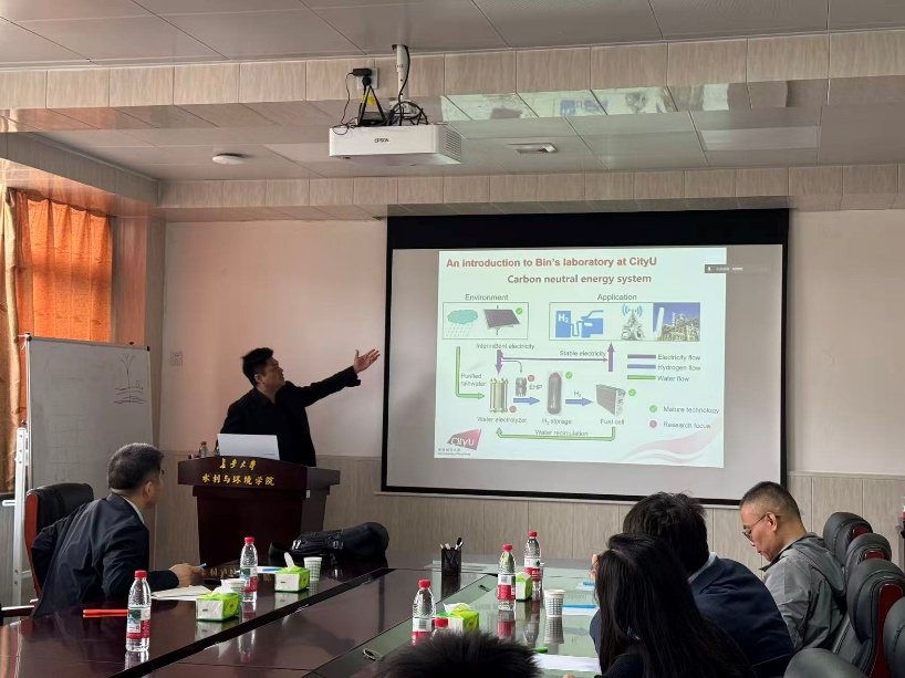 2026年4月10日上午,应水环学院王其召教授邀请,香港城市大学材料科学与工程学院刘彬教授访问我院,在学院三楼会议室作题为“Nanostructured Titanium Dioxide Electrode for Solar Energy Conversion”的学术报告,校内外近30名师生参加了此次学术交流活动。