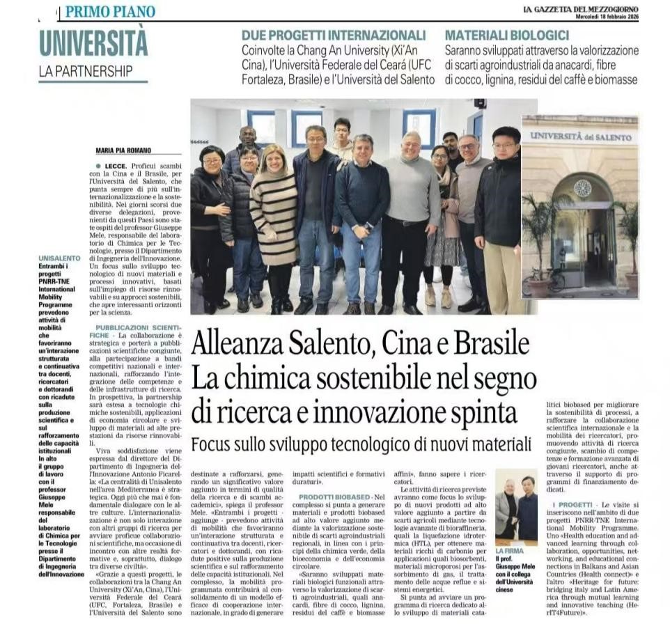 2026年1月25日至2月6日,在欧盟TNE国际合作交流项目和国家留学基金委公派专项共同支持下,水环学院院长白波带领相关教师,赴意大利萨兰托大学(Università del Salento)开展学术交流访问。在双方长期合作及国家外专项目合作成果基础上,进一步推动中意双边实质合作走深走实。