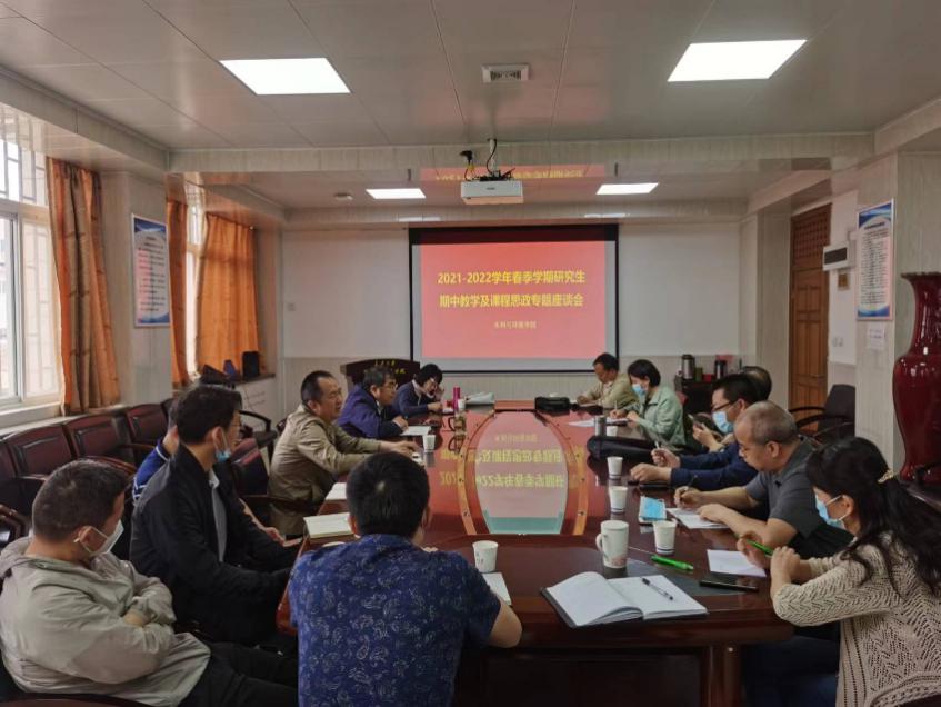 为进一步加强研究生教学过程管理和教学质量监控,交流课程思政建设情况,5月12日,水环学院在学院三楼会议室召开2021-2022学院春季学期研究生期中教学及课程思政专题座谈会。院长白波、副院长段磊、研究生教学督导颜卫亨、刘健、马致远、各系室主任、研究生主管、教务员、教师代表以及各年级研究生代表参加了会议,座谈会由段磊主持。