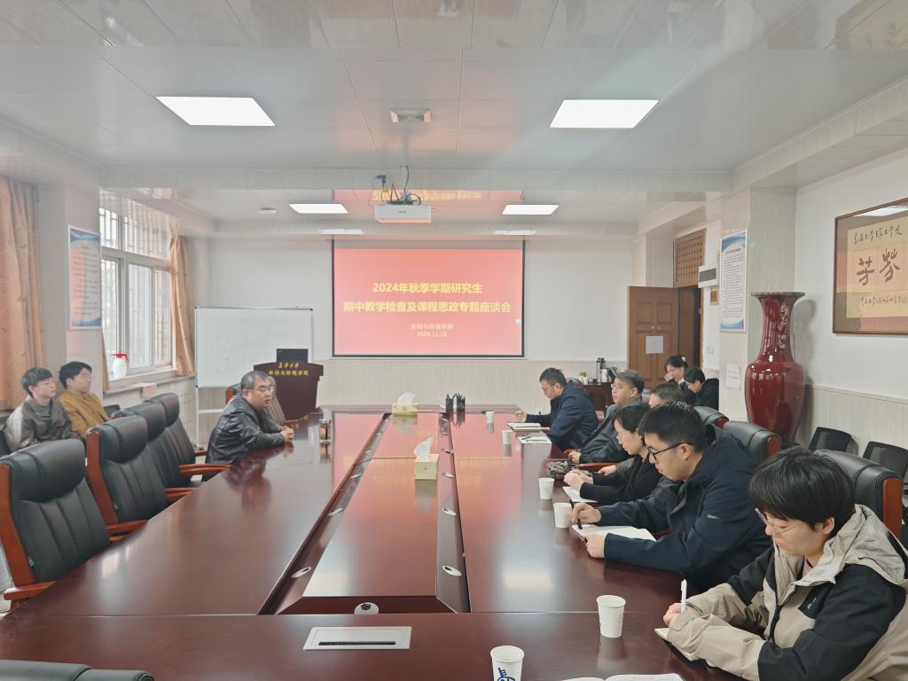 为进一步提高研究生教学及培养质量,加强教学监督与评价,及时解决研究生教学中存在的问题,11月18日上午,我院在学院三楼会议室召开2024年秋季学期研究生期中教学检查及课程思政专题座谈会。学院领导、系主任、教师代表和学生代表参加,副院长段磊主持会议。