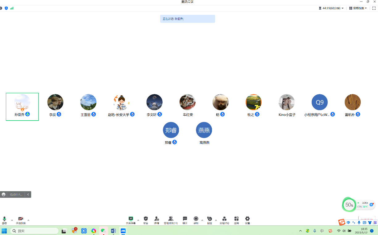 2023年5月12日上午水资源与环境试验中心党支部通过腾讯会议开展2022年新修订的《中国共产党章程》主题学习。会议由支部书记孙亚乔主持。支部宣传委员王雪丽为支部全体党员详细解读了新修订的《中国共产党章程》。