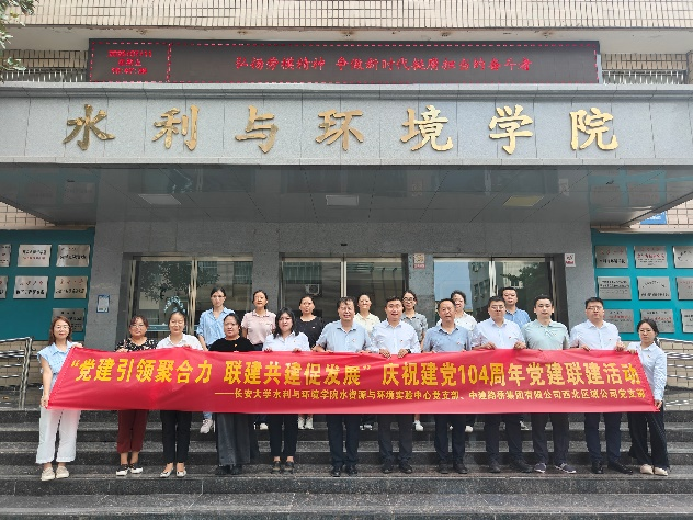 为庆祝中国共产党成立104周年,深化党建引领作用,促进校企合作共赢,2025年7月11日,水环中心党支部与中建路桥集团西北区域公司党支部联合开展党建联建活动。学院院长白波、党委书记张骞文、党委副书记刘扬出席活动,活动由王雪丽主持。