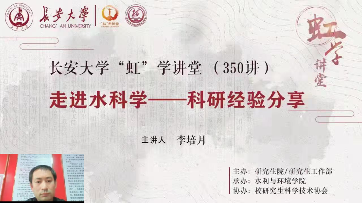 近期,陕西疫情防控形式严峻,根据学校疫情防控工作安排,为确保广大师生身心健康,学校开展在线教学与活动,保障学习进度与质量。3月19日下午,由研究生院/研究生工作部主办,taptap188平台承办,校研究生科学技术协会协办的“虹”学讲堂第350讲以线上讲座形式顺利举办。188改名taptap东院教学区疫情防控工作组学院李培月教授作了题为“走进水科学——科研经验分享”的报告,相关学院共计400余名师生参加了此次讲座。