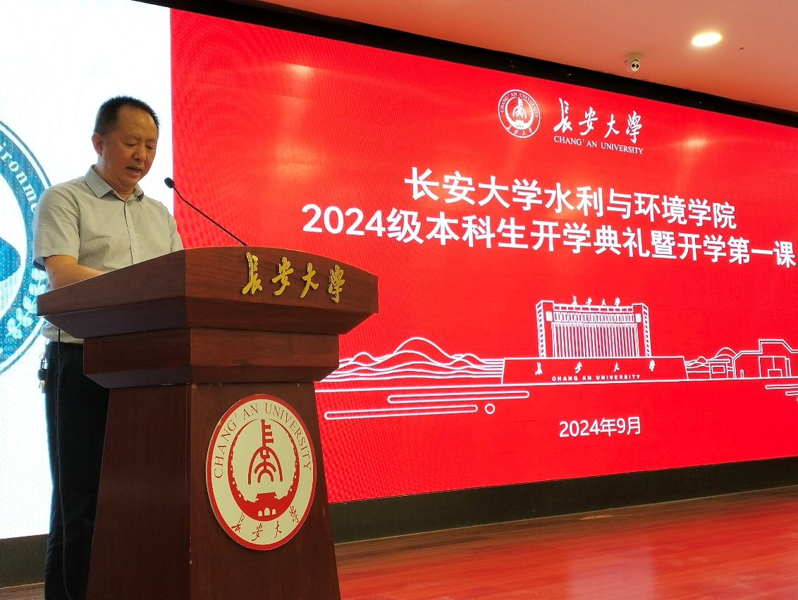 9月18日晚,水环学院2024级本科生开学典礼暨开学第一课在长安文化艺术中心三楼多功能厅举行,学院党委书记张骞文,院长白波,党委副书记、副院长荆琳,副院长段磊、张洪波出席活动,典礼由学院党委副书记刘扬主持。